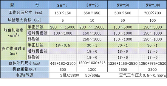SW系列冲击试验机采用重力自由落体的工作原理,来模拟产品的实际使用环境。采用气液增压,强力摩擦抱闸防二次冲击制动机构,试验精确且安全可靠。适用于航空、航天、船舶、兵器、电子、汽车、家电及交通运输等领域的抗冲击试验。通过选择不同的波形发生器,可进行半正弦波,后峰锯齿波或梯形波等冲击波形之冲击试验。